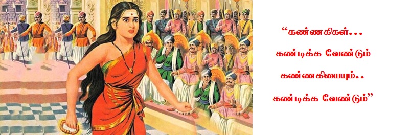 கண்ணகி என்றவுடன் அவளது காற்சிலம்பும் அவளுடைய கர்சனையும், மன்னனை மண்டியிட வைத்ததையும் தனக்கு மாலையிட்டவனை குற்றமற்றவன் என்று நிருபித்ததையும் நீதியை வாழவைக்க மன்னன் குடும்பத்தைச் சாகடித்ததையும், சாகாவரம் பெற்ற இலக்கியம் சிலப்பதிகாரம் நமது சிந்தனைக் கதவினை நெடுநேரம் தட்டிக்கொண்டே இருக்கும்.