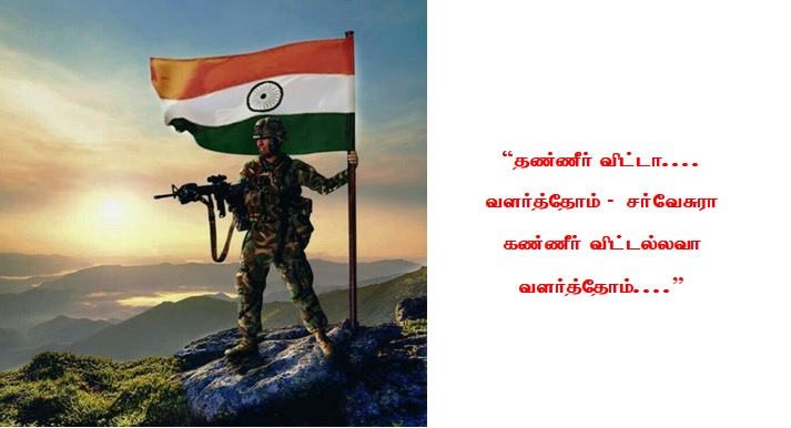 காதல் என்ற பெயரில் காமத்தைக் கட்டுப்படுத்தத் தெரியாமல் நெறிதவறி, தறிகெட்டு ஓடும் எங்கள் கண்ணகிகளே தன் காதலுக்கு இடையூறாக இருக்கிறான் என்று கணவனையே கூலிப்படை வைத்துக் கழுத்தறுப்பதும் உயிரில் பாதியான மனைவியின் உயிரை எடுக்கின்ற மானங்கெட்ட மனிதர்களை விட்டு விட்டு எல்லையில் என்ன செய்கிறேன்?