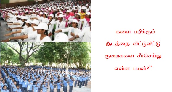 இதனை யார் ஒழிப்பது? ஊருக்கு இளைத்தவன் பிள்ளையார் குளத்து ஆண்டி கதையாக ஆசிரியர்தான் ஊர்வலம் நடத்த வேண்டும். காவல்துறையைக் கூட்டி வந்து விழிப்புணர்வு கொடுக்க வேண்டும். புகைப்படம் எடுக்க வேண்டும். அதனை பதிவு செய்ய வேண்டும். அப்படி செய்துவிட்டால் இனிமேல் தமிழகத்தில் போதையே இல்லாமல் போய்விடும்! அப்படித்தானே! உங்கள் நெஞ்சைத் தொட்டுச் சொல்லுங்கள் வாங்குகின்ற சம்பளத்திற்கு வஞ்சகம் இல்லாமல் வேலை செய்வதற்காக எல்லோரும் இப்படி அரசு ஆட்டுவிக்கும்படி ஆடும் பொம்மைகளாக ஆடிக்கொண்டு இருக்கிறார்கள்!.