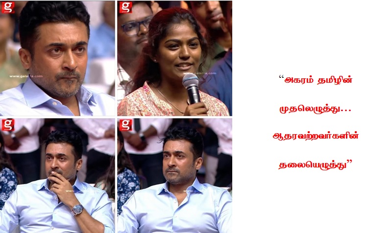 சூர்யா இதனைச் செய்கிறார் சமுதாயத்தில் மிகவும் பின்தங்கிய மாணவர்கள், தாயற்ற பெண் குழந்தைகள், மாற்றுத் திறனாளிகள், பெற்றோர்களை இழந்தவர்கள் எனத் தேடித் தேடி இந்தத் தெய்வ மனிதன் அவர்களைப் படிக்க வைத்து சமூகத்தில் உயர்ந்த பணிகளில் அமர்த்தி, அவர்கள் கனவில் கூட காணமுடியாத வாழ்க்கையை அவர்கள் கையில் கொடுத்து வருகிறார். அதனைத் தடுப்பதற்கு கடவுளின் பெயரைச் சொல்லிக் கொண்டு கயவர்கள் திரிவதுதான் நம் நம் இந்திய தேசத்தின் இழி நிலை.